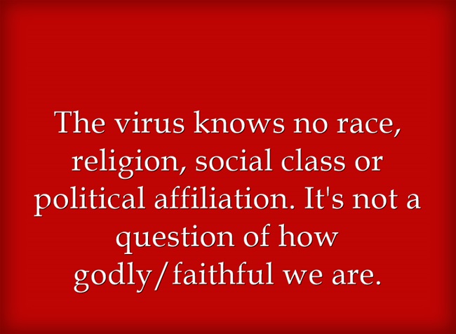 (on the basis of Psalm 91) absolute immunity to the virus as it knows no race, religion, social class or
